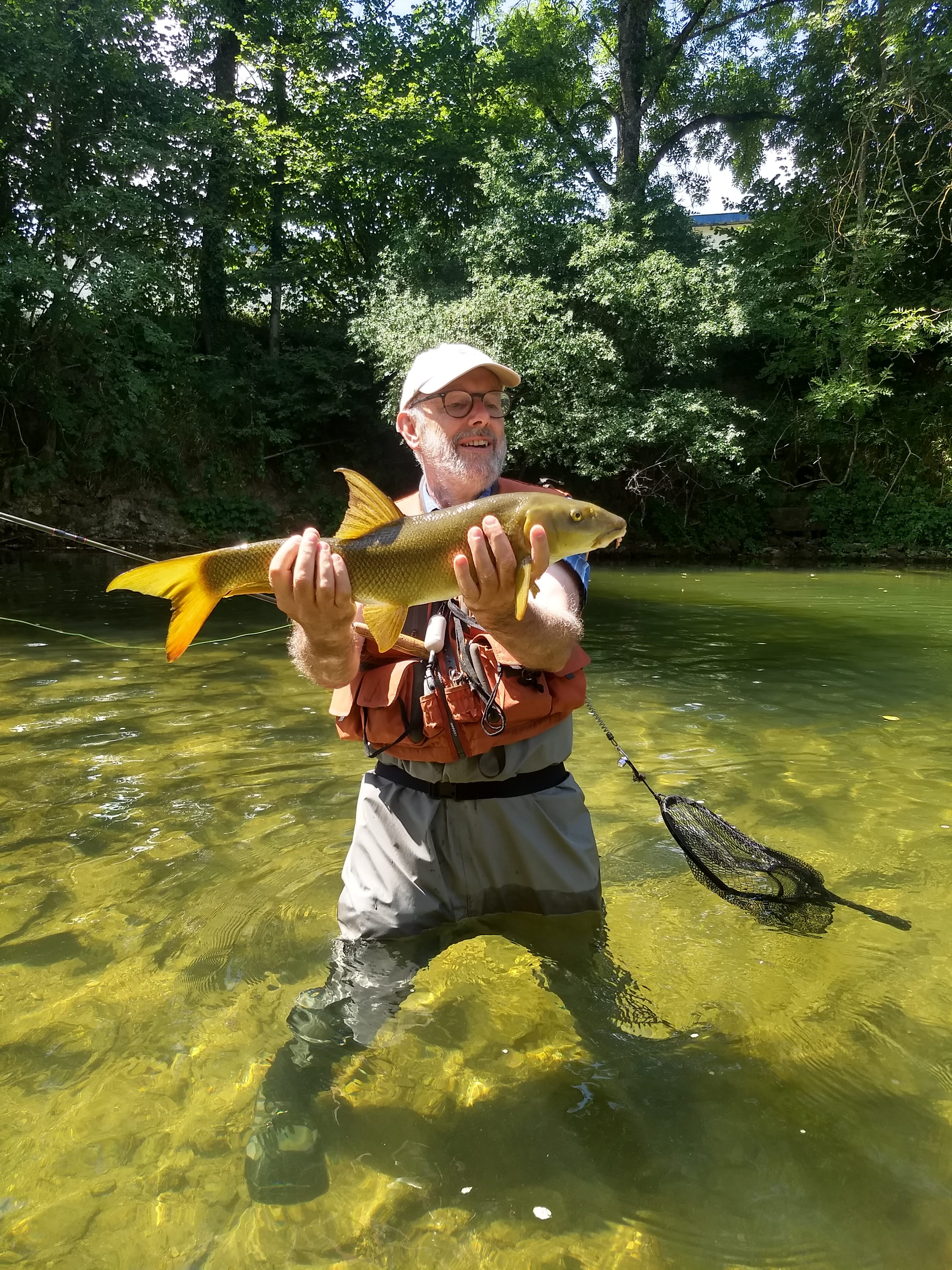 ![]() | ROGNON | stroomafwaarts Andelot | 48.2668 | 5.2915 | ![]() vissoorten: heel veel vlagzalm, maar ook forel 1e categorie water: 7 km; 5-8 m breed, niet diep maar met diepe poelen omschrijving: mooi riviertje, met kristalhelder water, door weilanden, omzoomd door bomen gedeelte binnen Andelot is niet goed waden: gemakkelijk waden, harde ondergrond vergunning: traject Andelot bar-hotel-restaurant Cantharel in Andelot alleen op ma, wo, za, zo en feestdagen 3 wilde salmoniden, aangevuld met 3 regenboogforellen |